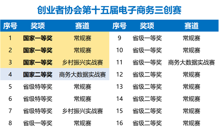 8月6日,协会获得第十五届全国大学生电子商务“创新、创意及创业”挑战赛国家一等奖3项、国家二等奖1项,省级以上奖项13项,刷新学校赛事历史纪录。