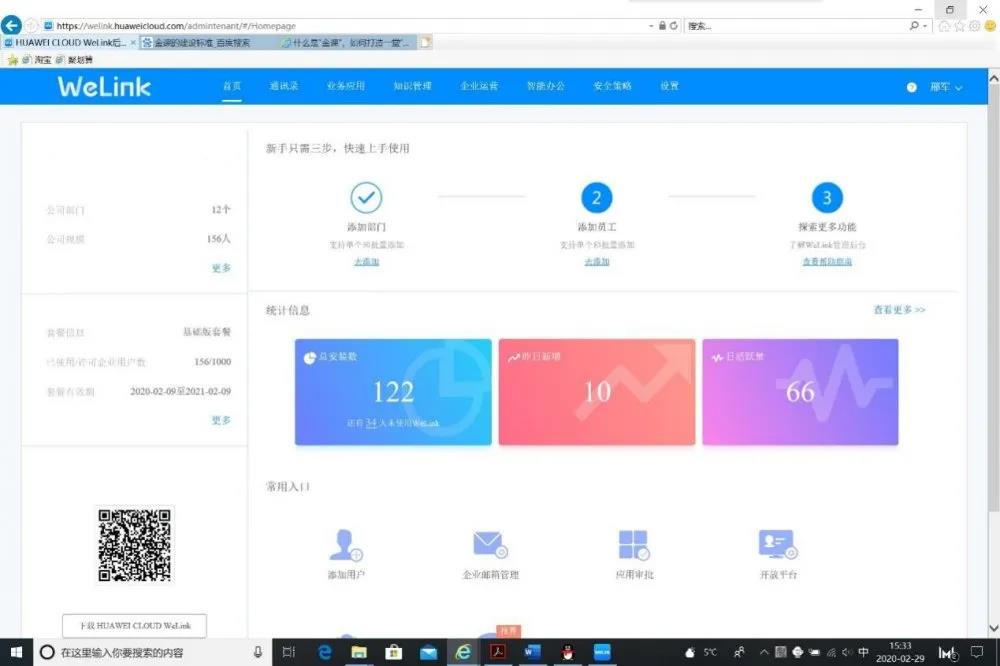 刚开始进行线上教学时,我也准备使用QQ、企业微信、钉钉等平台开展直播授课,由于各高校、中小学均开展线上教学,各大平台纷纷崩溃,网络效果时断时续,且这些平台的功能较为单一。为了保证线上直播教学效果,我启用华为WeLink公有云办公平台,为4个班级的学生分别申请了账号,利用其中的公有云视频会议系统,为学生进行线上直播,可以流畅地进行音视频交流与桌面共享。