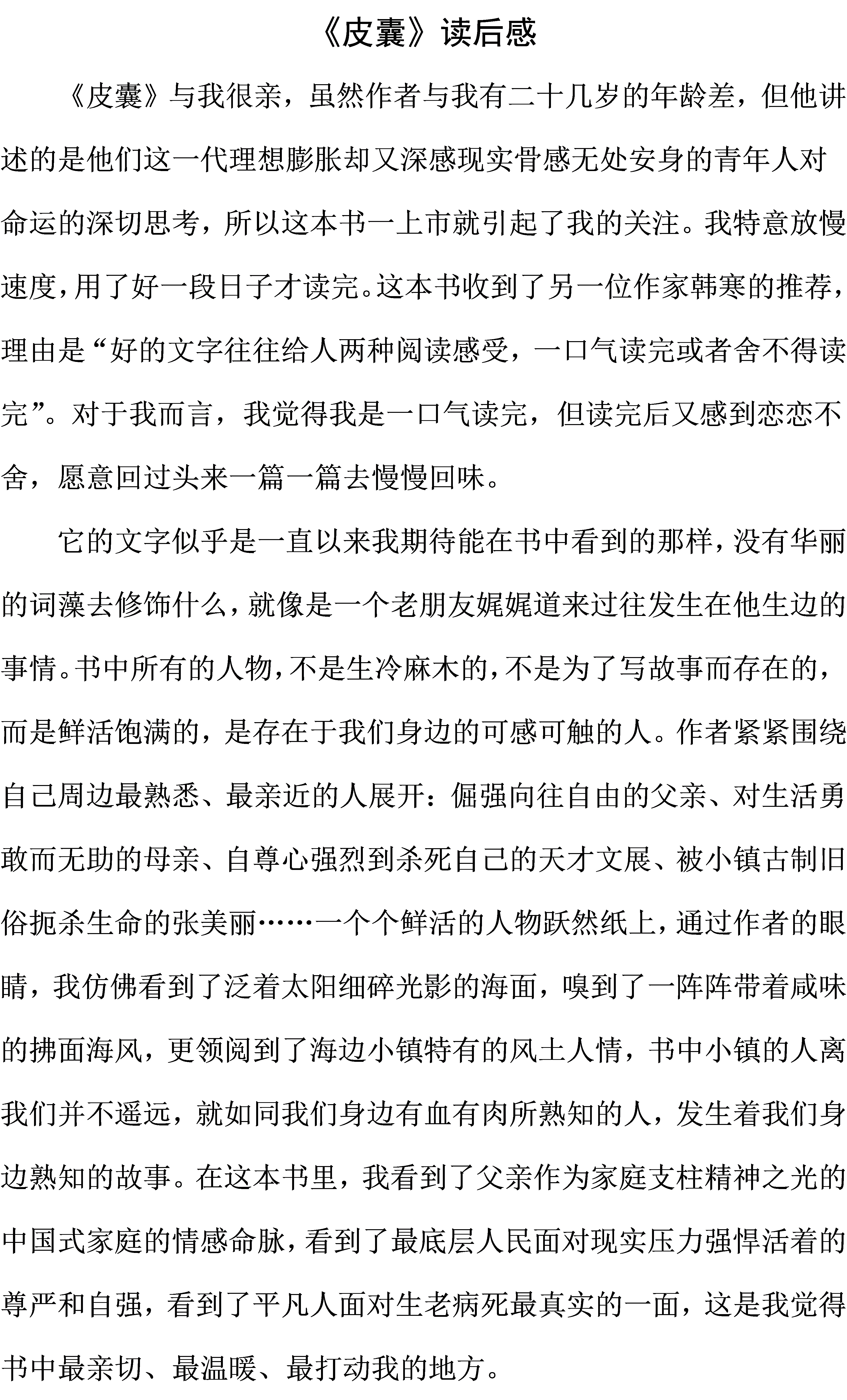 《皮囊》简介:《皮囊》是一部有着小说阅读质感的散文集,由蔡崇达编写、韩寒监制。文集风格沉稳,表达了作者这一代理想膨胀却又深感现实骨感而无处安身的青年人对自己命运的深切思考。