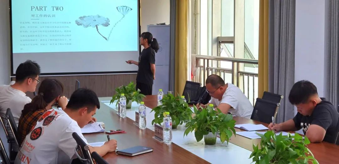 面试有序进行,面试者阐述了自己对助理班导这个职务的认识、自己突出的优势、以及日后担任助理班导的工作规划,评委老师根据实际情况依次对选手进行提问。