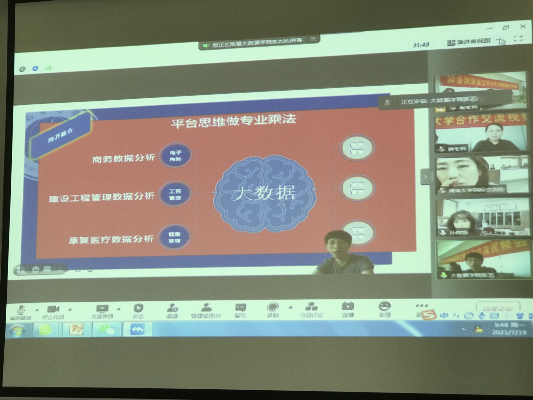 为促进我院与韩国湖南大学电子竞技专业留学合作项目的落实, 2021年7月19日上午,我院与韩国湖南大学在知新楼四楼会议室召开视频交流会议。