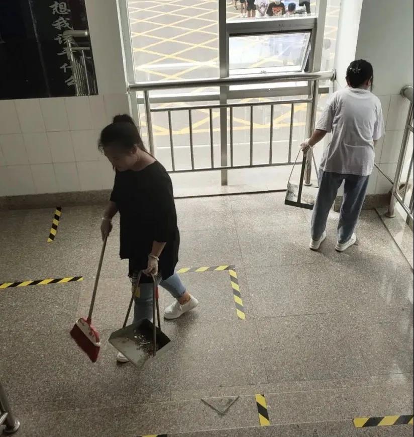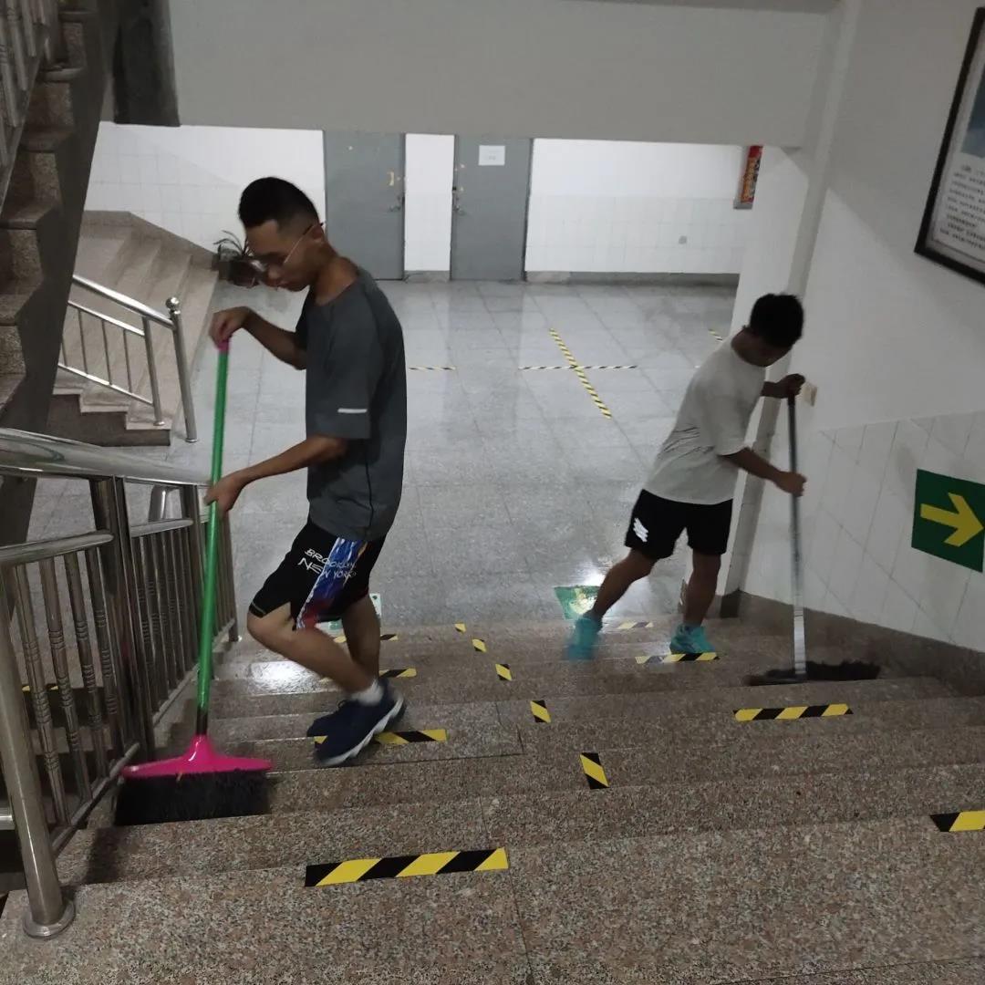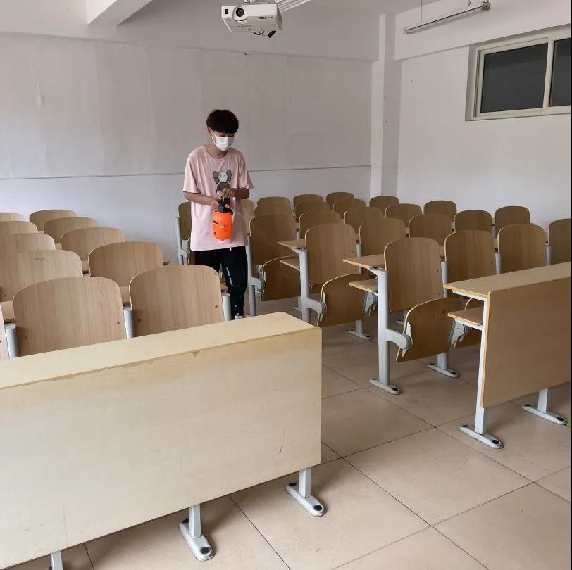 志愿者们紧密配合,在老师的指导下,个人防护、消毒液配置、消杀机械使用等方面,严格按照规范,无论是在教学楼内还是宿舍内,都能看见志愿者们忙碌的身影。志愿者们对每个教室及宿舍进行了酒精消毒,还对走廊、楼梯等进行了清理打扫,以绝不漏掉任何一个角落的态度认真工作。天气炎热,个个汗流浃背,但大家不叫苦不叫累,干劲十足,紧张有序推进。保证消杀工作全覆盖,无死角。