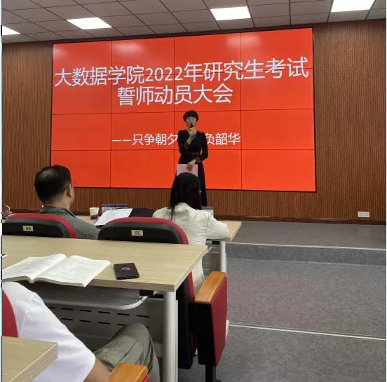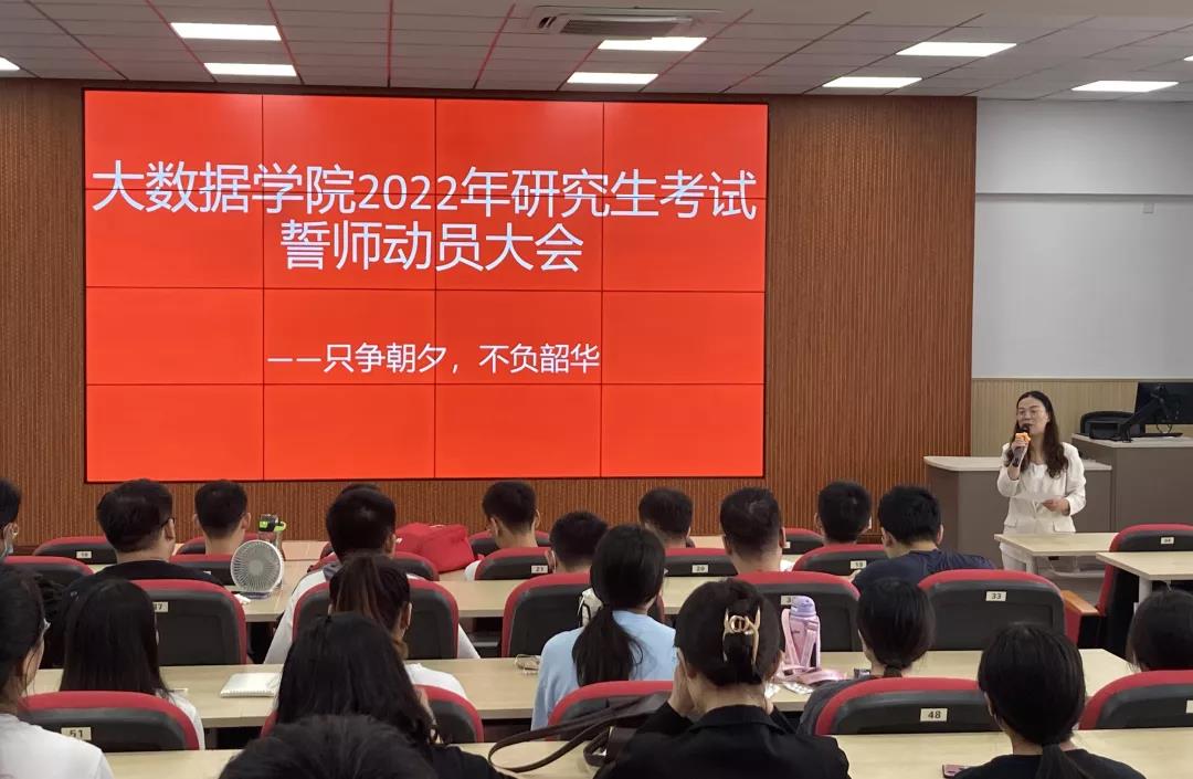 在这冲天香阵透长安,满城尽带黄金甲的金秋时节,在这距离硕士研究生已不足百日的关键之际,为了更好的鼓舞士气,给莘莘学子们加油助威,大数据学院于2021年10月4日隆重举行了2022年研究生考试誓师动员大会,大会在知新楼二楼东配报告厅举行。