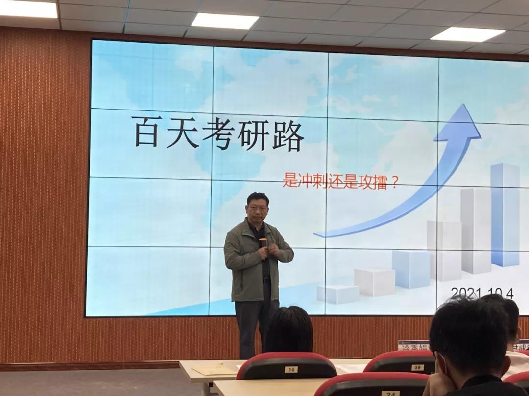 山东科技大学徐建国教授带领同学们迈进了“百天考研路”,从目标、时间、效率、成效、方法五方面提出攻克难关的谋略,并给出了制定规划、分解目标、坚持行动、掌握方法、强健体魄等有效建议。