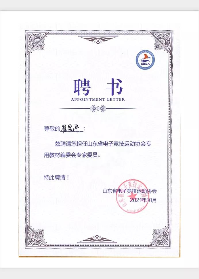 首先,山东省电子竞技运动协会秘书长李超给同学们介绍了电子竞技运动协会的起源,发展宗旨,管理架构及职能等。然后给同学们阐述了电竞行业的目前发展情况以及未来发展方向。指导学生一定要关注电竞行业的的动向以及行业标准,这样才能更好的从事电竞行业的工作。然后李秘书长给同学们介绍了高校工作委员会,并鼓励我院FNG电竞社团作为山东省电子竞技运动协会高校工作委员会会员单位,要做出成绩,要做成专业标杆。同时介绍了专业教材委员会/标准化委员会的职能,介绍了专家委员会成员,并宣读了聘任我院电子竞技教研室主任崔宪平老师为专家委员会专家委员。