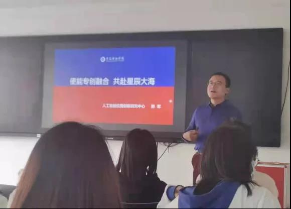 活动由大数据学院主办,人工智能应用创新研究中心承办,邀请了邢军博士。首先由邢军博士进行“使能专创融合 共赴星辰大海”的主题讲座。从人工智能发展史,突出贡献人物以及当今人工智能学习的热潮等方面为学生进行细致讲解,为同学们未来职业发展方向提出了建议。让同学们真正的了解AI,学习AI,应用AI。其次,活动进行了AI知识竞答活动,并对回答优异的同学颁发了奖品,最后,以一段展望未来的飞桨宣传片结束。