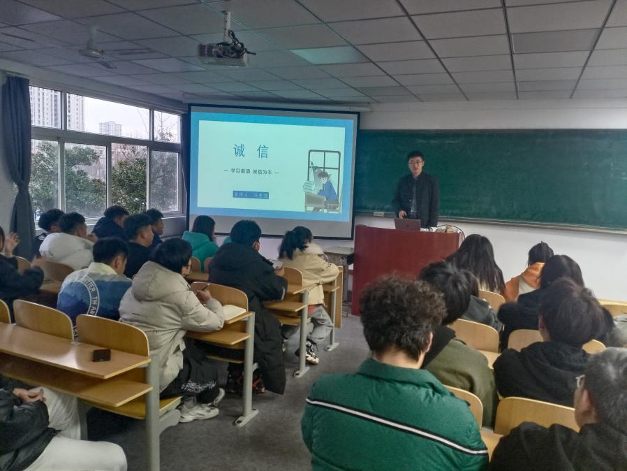 于老师用”人无信不立——刘备“、”诚信的商业价值——钱、信用卡、花呗“、”征信体系——助学贷款按时还款“来引出此次班会主题诚信。其次,列举了讲述哈佛大学图书馆事件,告诉学生法理第一。进而通过考试作弊刑法的规定,打消同学们可能存在的侥幸心理。最后,为同学们提供了克服考前紧张的小技巧。
