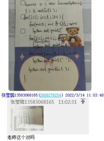 3月14日上午3-4节是我的《Java程序设计》课程,我提前与我的课代表协商好,让他们在学校利用自己的电脑连上投影仪,采用QQ直播+录播的方式同步到大屏上,让同学们在教室里采用线下听课,做好笔记,同时同学们利用手机进行抢答,规定每次问题前10名抢答的同学进行相应的加分,这样就调动了学生互动的积极性,听课效率非常高,同时我要求课代表将在教室上课学生学习现场进行拍照发给我,学生上课照片如下: