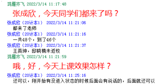 相对于2020年线上教学,由于学生绝大部分已返校,本次线上教学的任务更加重,学生的心情更加紧张,因此课前疏导成为第一节课的重中之重。