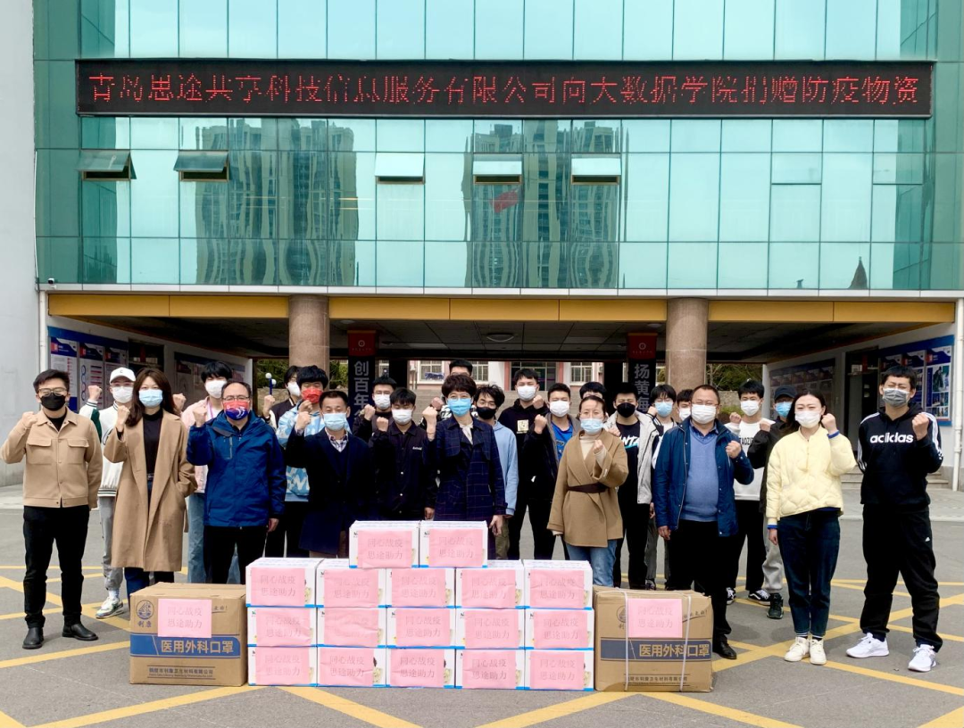 为助力雷竞技的赛事积分的防疫工作,青岛思途共享科技信息服务有限公司于2022年3月31日向大数据学院捐赠7000只口罩、500瓶84消毒液,为大数据学院的防疫工作贡献一份力量。