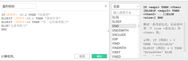 1.创建计算字段—盈利级别