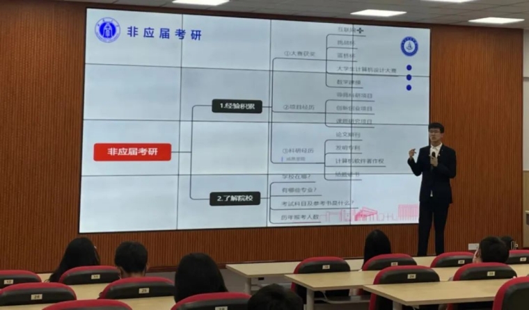 为继续保持我院多年的考研风气,使同学们能够更好的了解和掌握未来考研的趋势、备考考研,我院于4月26日晚自习举办青年会客厅活动,特别邀请丛国勋学长为我们分享一些他的考研经验,让广大同学对考研有更深入的了解,帮助同学们及时解决和处理在考研中遇到的各种困难和问题,坚定正确的奋斗方向,端正考研态度,打好坚实的基础。