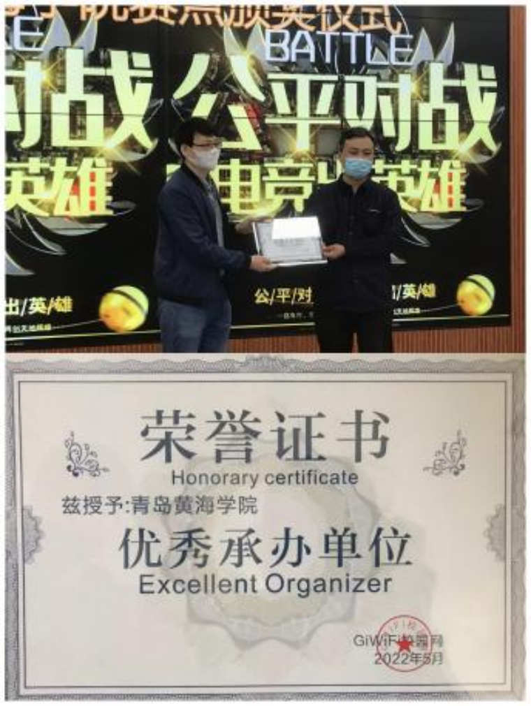 5月10日下午,山东省“GiWiFi杯”王者荣耀联赛雷竞技的赛事积分分赛点的颁奖仪式在知新楼二楼东配多媒体教室举行。上海寰创网络科技有限公司王宝银经理、雷竞技的赛事积分信息资源部赵建东部长、雷竞技的赛事积分大数据学院孙守强副院长、大数据学院移动应用开发与电子竞技教研室崔宪平主任出席了颁奖仪式并为获奖战队颁奖。