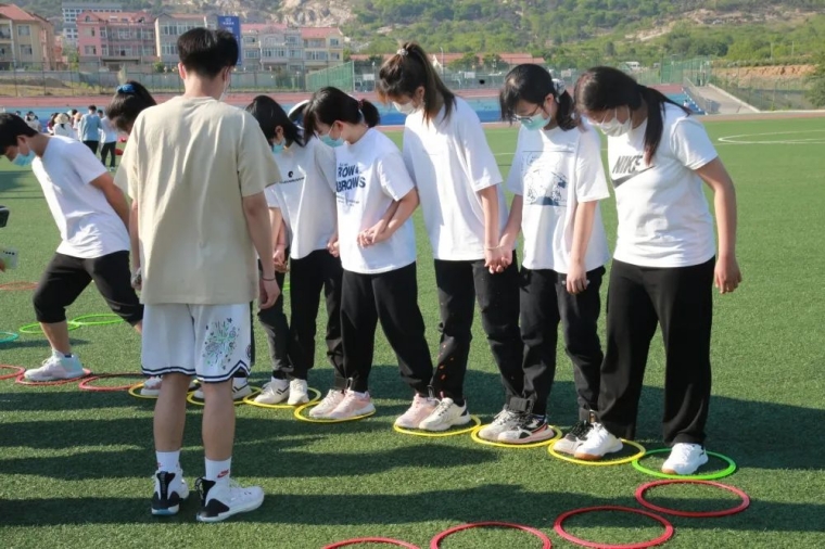 参赛成员需要手拉手站成一列,在不松开手,不进行语言交流的情况下让呼啦圈穿过所有人,极大的考验同学们的身体灵活度哦~