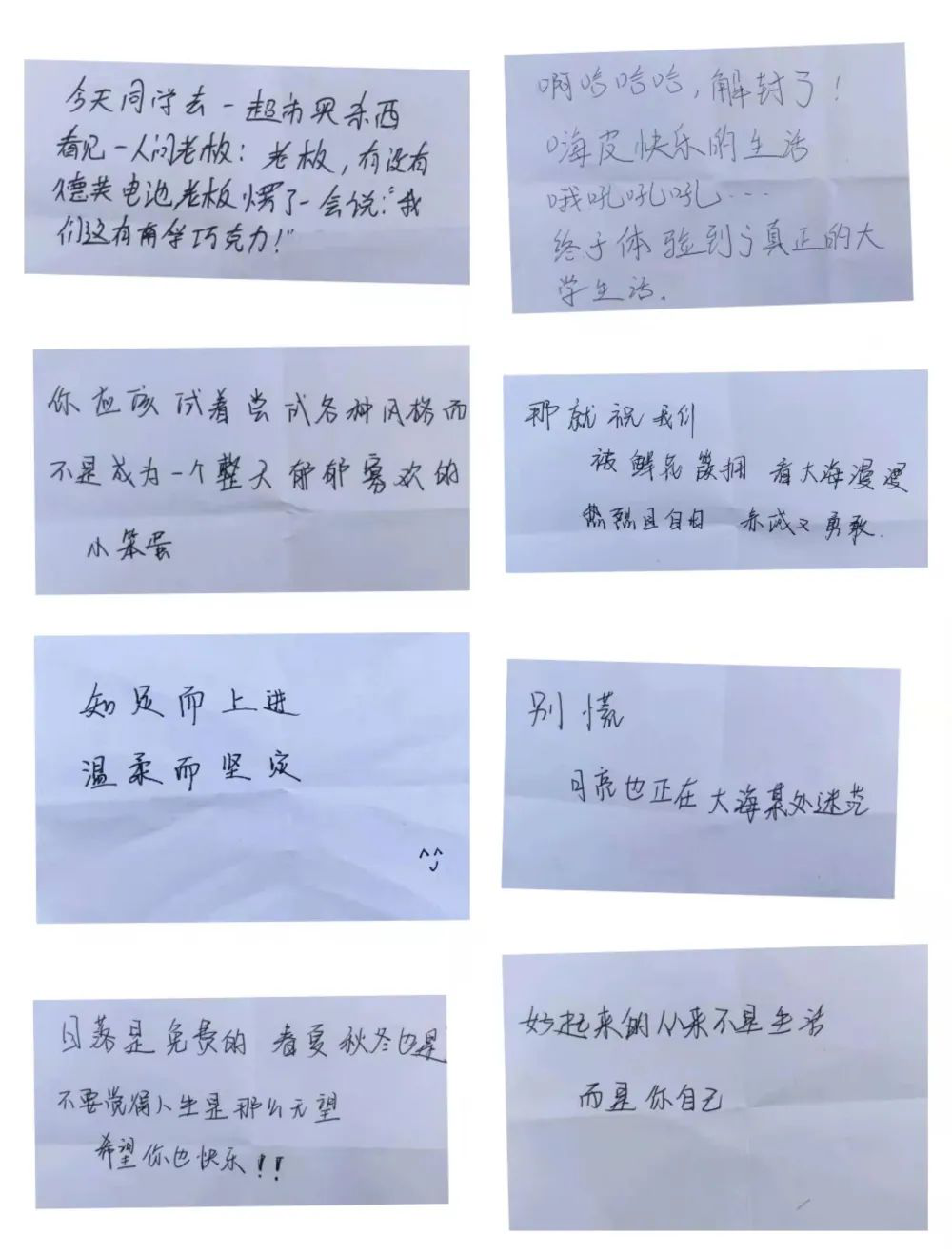 活动现场人头攒动,同学们纷纷拿起笔,在便签纸上记录自己的心声。一张张便签纸或被投放进“烦恼信箱”,或被投放进“快乐信箱”。“快乐信箱”里的便签又被一张张抽走。展开快乐便签,周围的同学便凑了过来。未等读完,大家就嘴角上扬,眼睛就笑成了一条线……