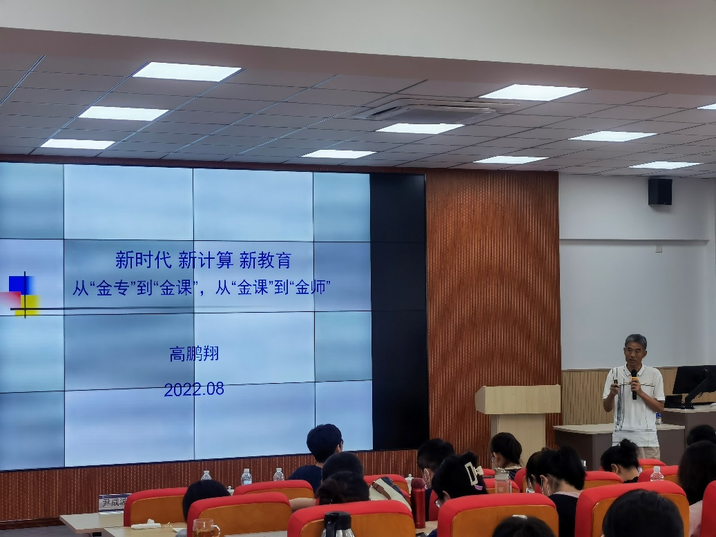 高鹏翔教授围绕《新时代 新计算 新教育——从“金专”到“金课”,从“金课”到“金师”》的主题,以信息时代、智能时代等不同时代的不同要求引出新时代、新计算、新教育的观点,阐述了从“金专”到“金课”、从“金课”到“金师”的发展过程,明确了教师教学水平的重要性,为我院教师打造“金师”指明了道路。