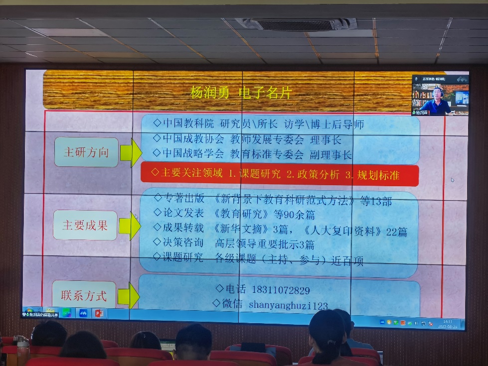 常务副院长尹成波对本次提升班的意义和要求做了详细阐述,尹院长强调:本次培训不单纯地只是听专家讲一讲,而是还要坐下来聊一聊,每一位老师都要参与座谈研讨,是一次非常难得的机会,也是提升我院内涵发展,助力教师全面提升的高级助推器。跳出舒适圈,勇往直前,为全面提升我们的教科研素养,为学校的教育教学工作做出积极的贡献。