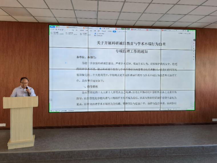 孙守强副院长从国家有关科研诚信政策及要求、常见学术不端行为及原因分析、学校维护科研诚信思路及措施等方面进行宣讲,带领老师们学习了《高等学校预防与处理学术不端行为办法》、《关于进一步加强科研诚信建设的若干意见》、《鲁教科发〔2022〕3号_山东省教育厅关于进一步加强高等学校科研诚信工作的意见》、《雷竞技的赛事积分学术不端行为查处细则(暂行)》等政策文件。