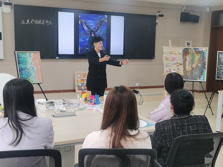 张梦璐老师的艺术气质惊艳了所有观众,一句“艺术融入生活、创造生活、治愈生活”引起大家共鸣。语言、音乐、绘画不同艺术领域的融合给老师们带来了一场视听盛宴。