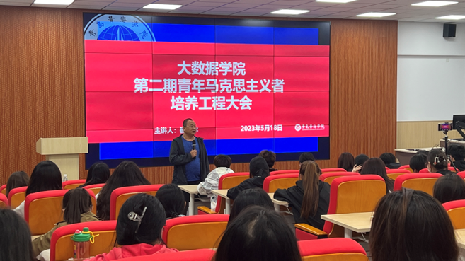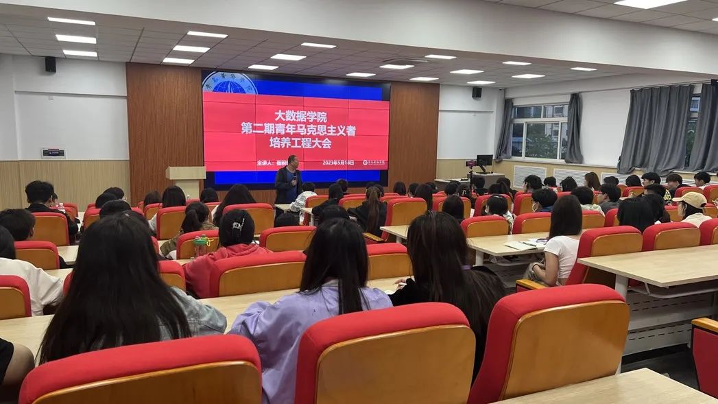 2023年5月18日晚,大数据学院本年度第二期青马工程大会在知新楼二楼东配阳学术报告厅举行,各智慧教室设置分会场。本次会议由大数据学院学工主任崔积学老师主讲,学院学生干部代表、教官团参加此次会议。
