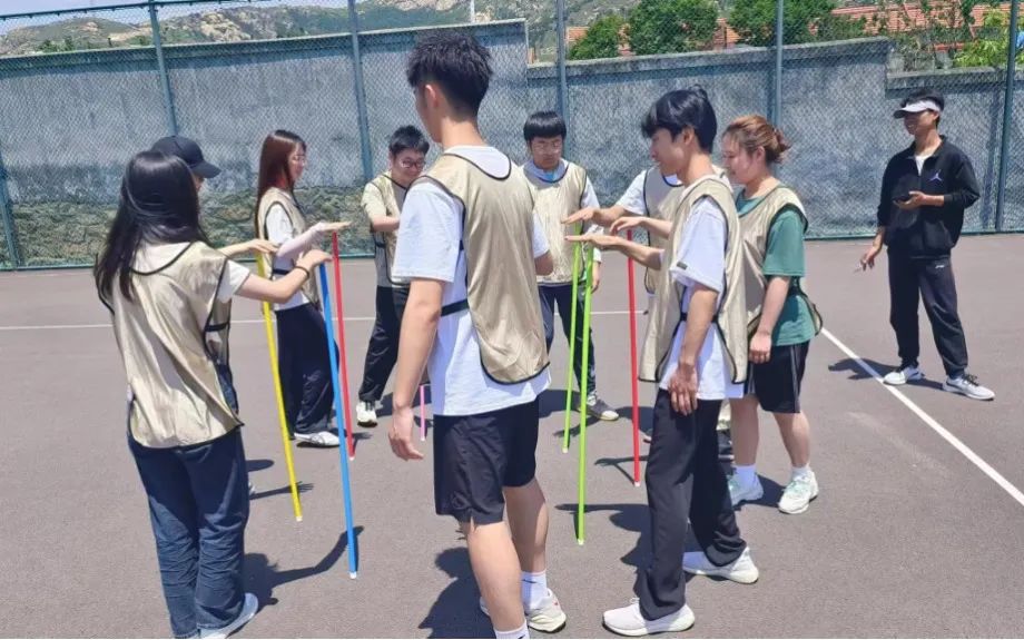 在“不倒森林”项目中,每位队员都需要手扶持一根棒子,保持直立不倒。在队员们的相互配合下,他们需要高效地移动步伐,将右手掌心按到相邻队员的棒子上。这个项目需要非常高的团队合作能力,因为任何一个队员的失误都会导致前功尽弃。在比赛的过程中,队员们通过互相配合,逐渐增强团队的凝聚力。队员们通过频繁的交换,建立了更紧密的联系,增强了他们的共同目标感。