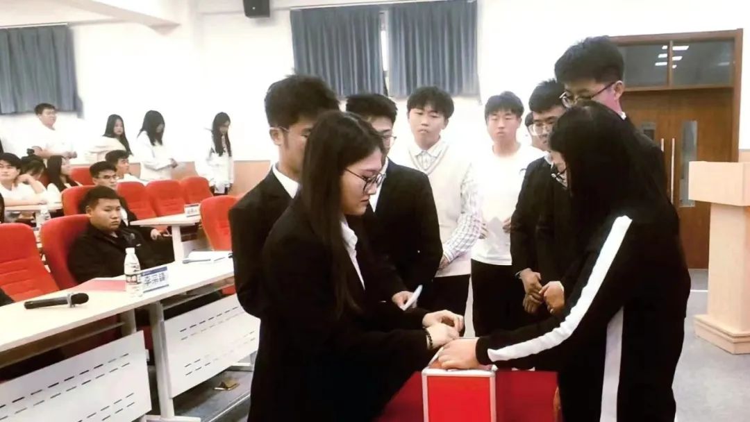 全体学生代表在总监票人和总计票人的监督下,对新一届主席团候选人进行表决投票。