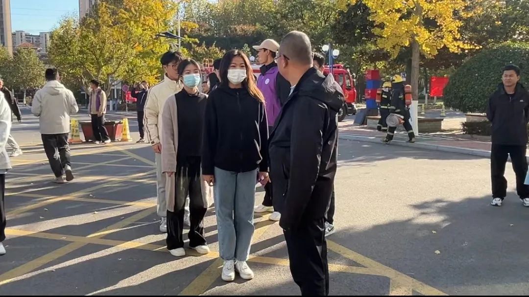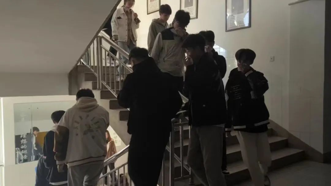 警报声响起,各位辅导员老师迅速到达相应班级,引导学生沿安全通道快速疏散。同学们听从指挥,用湿毛巾或衣袖捂住口鼻,有序撤离、行动迅速。