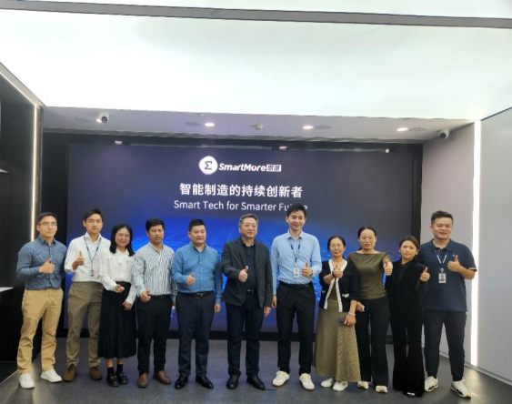 走访中,一行人参观了企业现场环境与特色产品,重点参观了 SMore ViMo(Vision and More)智能工业平台,这是一款端到端的全流程工业智能化通用型平台,即使是零专业算法背景的技术人员也可以快速进行模型训练。目前,SMore ViMo已搭载了超过1000个细分行业场景的智能化模型,内嵌了超过50种算法增强等工具。