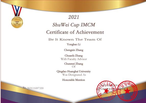 2021年获得“校级优秀学生干部”、“优秀共青团员”、“优秀学友导师”荣誉称号;2021年“外研社·国才杯”全国英语阅读大赛校级初赛一等奖;2021年数维杯二等奖;2021年亚太地区大学生数学建模竞赛三等奖;2021年第三届全国高校计算机能力挑战赛决赛三等奖;2022年、2023年国家励志奖学金;2022年第九届“大唐杯”全国大学生移动通信5G技术大赛山东省赛区“三等奖;2022年获得正大杯第十二届全国大学生市场调查与分析大赛山东赛区一等奖;2023年“文硕杯”第四届山东省大学生医养健康创新创业大赛三等奖;被评为2024届“山东省普通高等学校优秀毕业生”称号;通过全国大学生英语CET4、普通话二级、Word岗位能力评测证书等多项荣誉,这些大学期间的经历,都会是今后的宝贵财富。