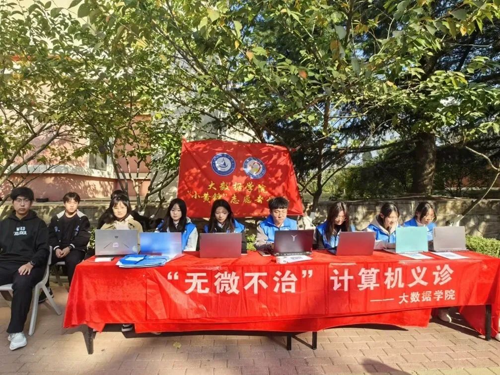为积极弘扬雷锋精神,增强同学们的社会责任感和使命担当感,让同学们将自身所学回馈到校园,大数据学院“小黄锋”志愿者协会联合Data jumping协会于2024年11月6日在樱花大道开展“无微不治”计算机义诊志愿服务活动。本次活动开展期间,参与义诊的同学们免费为在校大学生解答计算机专业方面的疑惑,帮助同学们完成磁盘空间清理、重装系统、调整配置等电脑软硬件方面的维修服务。