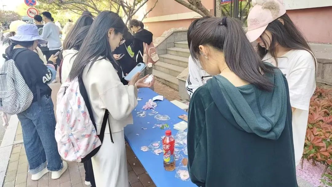 同学们围坐畅谈,共同制作花签,在轻松的氛围中倾诉困惑、获取建议,让活动不仅是一次打卡,更成为心灵的避风港。而互动打卡区的镜头里,一张张与心花签的合影定格了美好瞬间,许多同学都得到鼓舞激励。