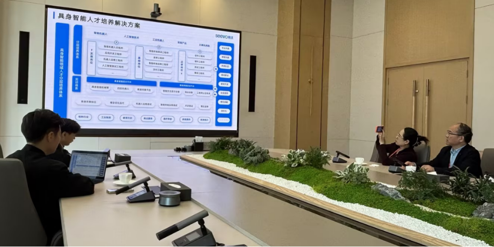 在广州视源电子科技股份有限公司工作人员的引导下,调研团队首先参观了现代化生产线与会展中心,直观感受企业从研发设计到生产制造的全流程管理。随后,双方举行座谈会。孙守强副院长介绍了学院发展近况,重点阐述了四期工程规划,并介绍了学院通过硬件类课程改造、虚拟现实向AIGC方向转型等举措,推动专业与产业深度对接。同时,孙守强副院长也提出,希望联合多家企业形成协同创新网络,在四期工程中打造特色产业集群。