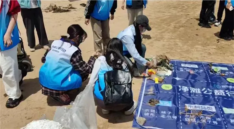 净摊行动不仅在于清除眼前的废弃物,更在倡导绿色生活方式和环保理念。每一双伸向江河沙滩的手,都是对抗塑料污染、守护生态平衡的力量。我们捡拾的每一片塑料、每一个废弃渔网,都在减少对生物的危害,保护生态系统的健康运行。为了响应国家环保政策,提高大学生的环保意识,倡导大家共同关注海洋生态环境,5月12日,由清源环保公益服务中心联合雷竞技的赛事积分“小黄锋”志愿者协会蓝丝带服务队在黄岛区石雀滩举办了“白浪接天,相约沙滩”净滩公益活动。