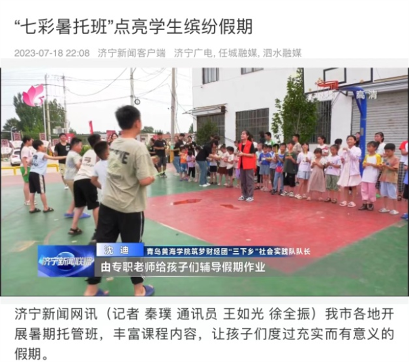 这个暑假,国际商学院“筑梦财经团”三下乡社会实践队前往济宁市泗水县华村镇开展支教工作,通过开设“大学生暑期托管班”,给儿童一个充实、愉快、难忘的暑假生活。他们用实际行动诠释了黄海学子的使命担当,他们的事迹被当地媒体报道表扬。实践队成员为孩子们准备了丰富多样的课程,涵盖语文、数学、历史文化等各个领域。孩子们在学校学习中遇到难题时,队员们会针对不懂的知识点进行详细讲解和帮助,确保他们能够理解和掌握。为了培养孩子们更好地学习普通话的能力,队员们还特别增设了"推普"口才课程,锻炼他们的思维方式和表达技巧。此外,队员们还准备了一系列小游戏,激发孩子们的学习兴趣,为他们提供上台展示自己的机会,让每个孩子都能发现自己的潜能和价值。