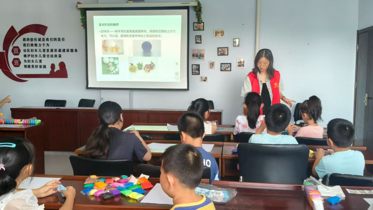 李俊莹同学在瑞祥社区工作,给孩子们上了节特色课,关于如何制作超轻粘土场景的小作品,下图是她在教小朋友如何做小鸭子,一步一步的讲解,起到了引领作用。在教完小朋友后,收拾他们制造的垃圾以及脱离桌子的椅子,把社区公共物品摆正归位,为下一次的使用提供方便和保障。还为小朋友讲解制作过程中的内容和操作,并为他们示范,讲解做超轻粘土的步骤以及注意事项。这次的社会实践将校园的理论知识与社会的实践需求紧密相连,让李俊莹同学收获颇丰,感触良多。