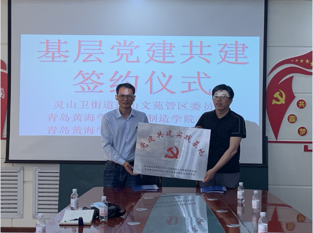 为深入贯彻落实党的十九大会议精神,充分发挥基层党组织建设的核心引领作用,构建结对帮带、双向促进、共同提高的基层党建格局,进一步探索创新党建工作, 6月5日,护理与健康学院党总支与灵山卫街道珠山文苑管区委员会举行了基层党建共建签约仪式,管区委员会宗书记、护理与健康学院党总支王芝发书记以及其他委员参加了签约仪式。