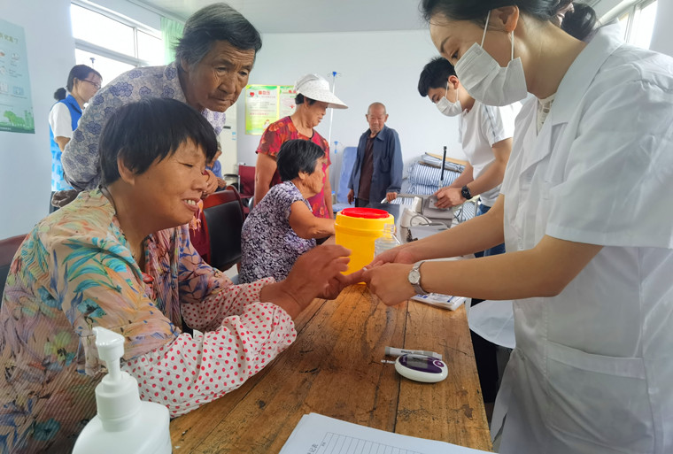 在宝山镇瓦屋大庄村村委会卫生室,护理与健康学院党总支组织委员张茂文老师、党员逄锦涛老师、护理与健康学院临床护理教研室李硕老师、基础护理教研室高欣老师、护理健康学院志愿者协会的学生们及宝山镇社会治理中心工作人员组成义诊团队,为村民免费测血压、血糖、心电图、宣讲健康科普知识等。活动现场,一些老人还携带近期检查结果和药物前来咨询,义诊团队成员对他们提出的各种问题进行耐心解答,给予合理的治疗方案,并向老人详细讲解了相关疾病的居家生活指导。