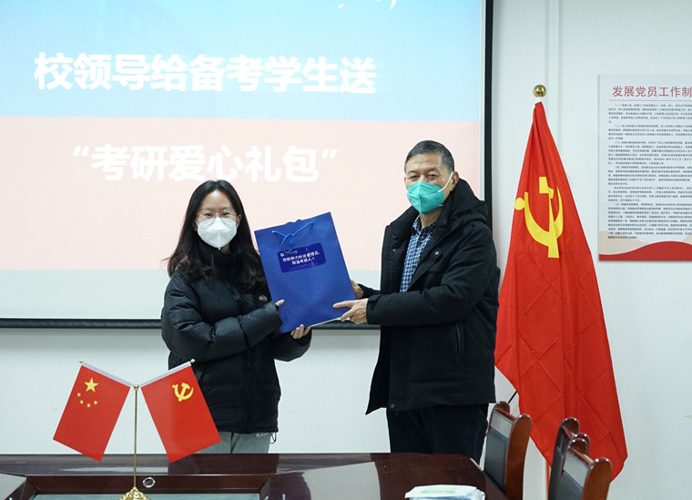 在考研慰问活动中,王渊明校长还为每一位考研学子送上了“考研暖心加油包”,为即将奔赴考场的莘莘学子加油助威。
