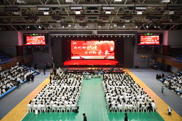 活动最后,学校和学校的领导老师们,以视频的方式为医学院即将毕业和即将踏入实习医院的同学们送上最温暖的毕业祝福,晚会在合唱《启程》《送别》中进入尾声,全体参会领导与演职人员在舞台上合影留念。