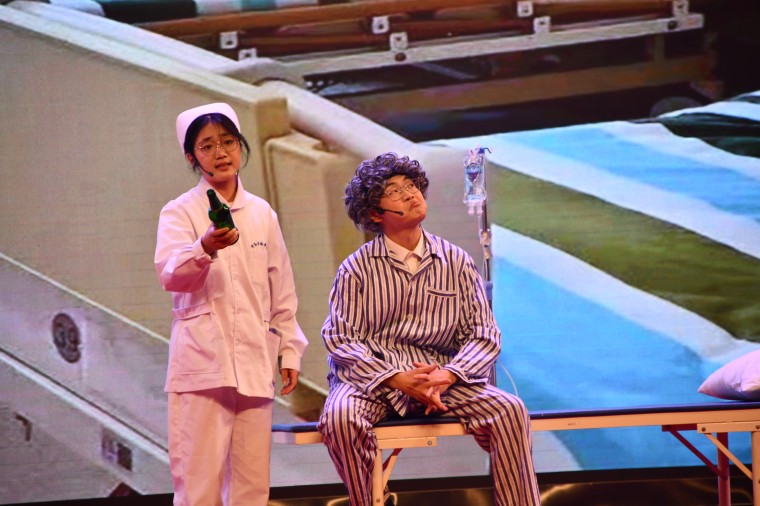 宣誓仪式后,精彩的文艺晚会正式开始。开场舞《bangbangbang》用火热激情的音乐和舞蹈直接引爆了全场气氛;朗诵《你的节日》用动情的话语歌颂了南丁格尔精神,赞颂了每一位医护工作者;小品《疯狂24小时》则是用诙谐生趣的表演,展现了小李护士的实习趣事;20位身穿医护人员工作服的同学带来了一场别致精彩的职业装走秀表演;医学院学生会干部和同学们带来了精彩的歌曲串烧,将整场晚会的气氛带向高潮......