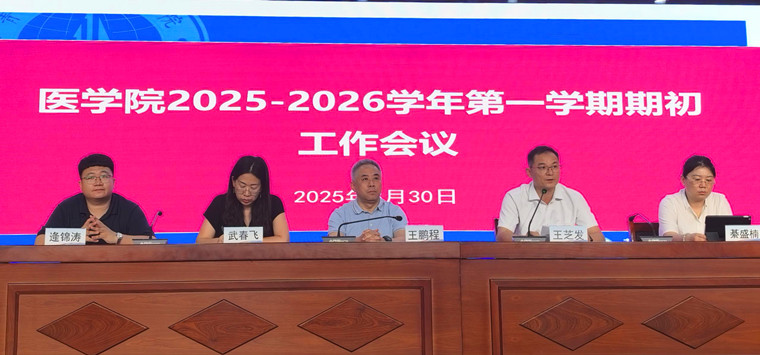 新学期伊始,为精准部署学期工作,凝聚全院力量,医学院于8月30日在知明楼报告厅召开了2025-2026学年全体教师工作会议。副校长兼医学院院长王鹏程、医学院常务副院长王芝发、副院长武春飞、副院长綦盛楠、院长助理逄锦涛等领导出席会议。会议由医学院常务副院长王芝发主持。