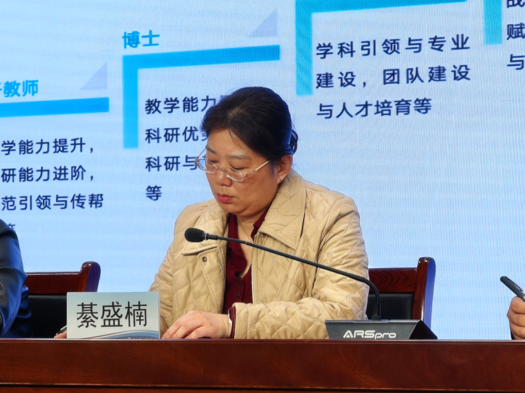 随后,学院各分管领导围绕教学、学生工作与综合管理、科研工作进行了专题汇报。綦盛楠副院长指出,2025年学院教学运行平稳,标志性成果实现突破,2026年将紧扣“稳运行、育项目、提质量”主线,重点抓好金课计划、教材编写及学风建设等工作。