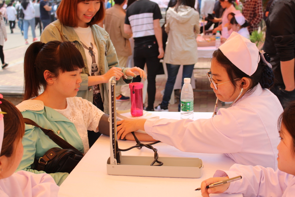学院张玉根院长、王玉霞副院长、学科带头人张学俊教授在现场为义诊学生示范指导,师生分成4组,对前来咨询的学生、老师及家属就内科、外科、妇科以及儿科方面的各种常见病问题进行了耐心的解答,为师生及家属免费量血压,做心电图。现场还发放常见病的预防知识及日常保健常识等宣传资料3000余份。