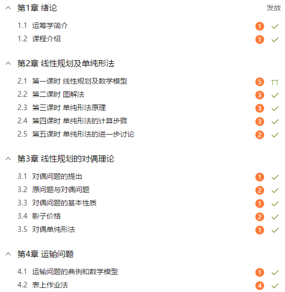 《运筹学》课程由于前期已经将该课程的作业和习题等资源上传使用,本学期只需要补充视频资源。