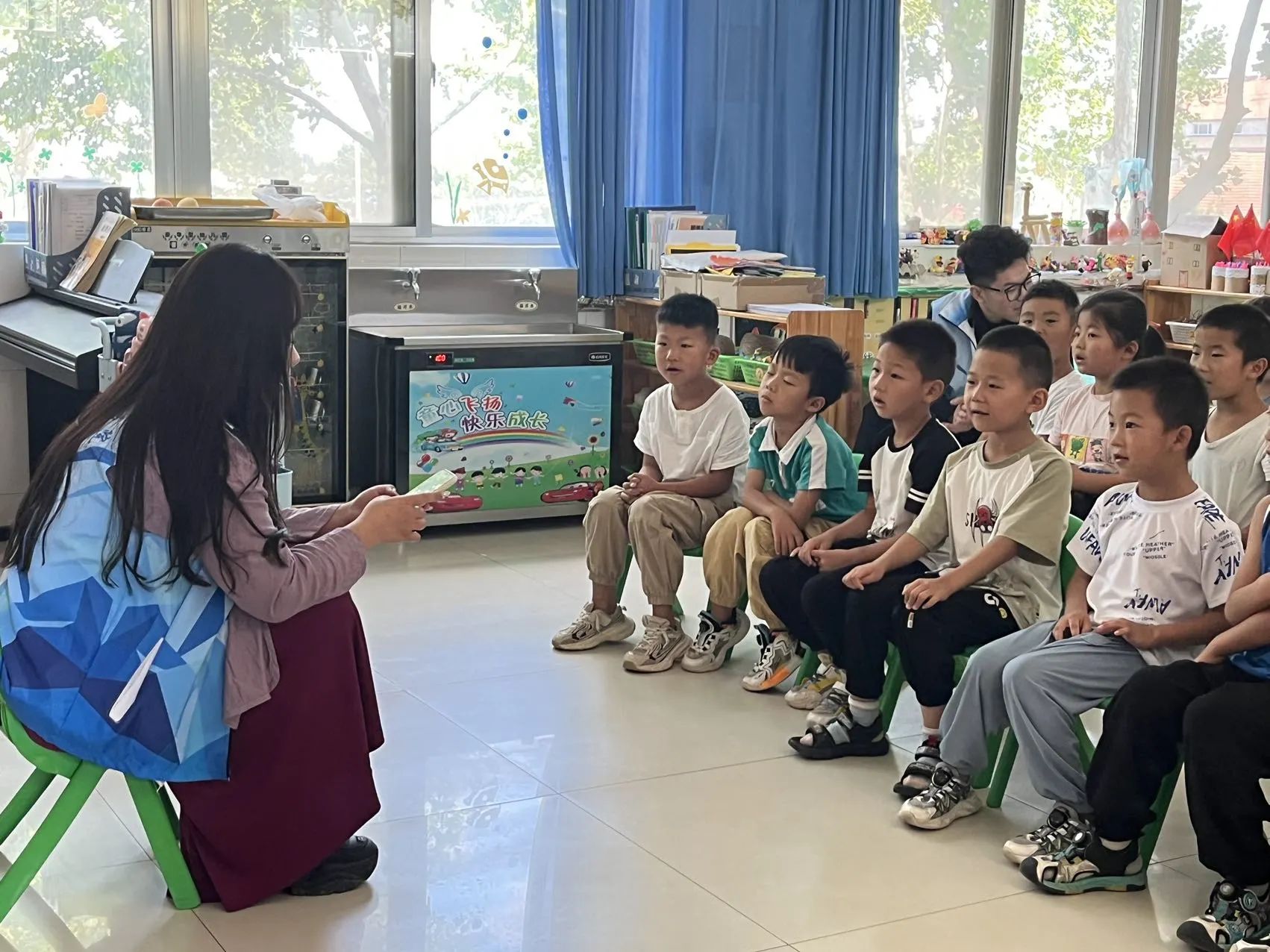7月18日清晨在志愿者们引领孩子们进去教室后幼儿园园长,为志愿者们展开了志愿服务后的第一次例会。首先园长向志愿者们表达了感谢之情,感谢志愿者们尽职尽责的对待幼儿园里的小朋友们并尽自身所能的向孩子们传输知识。其次对志愿者们昨天的趣味课程进行了高度评价。最后志愿者们向园长进行了进一步的工作汇报。