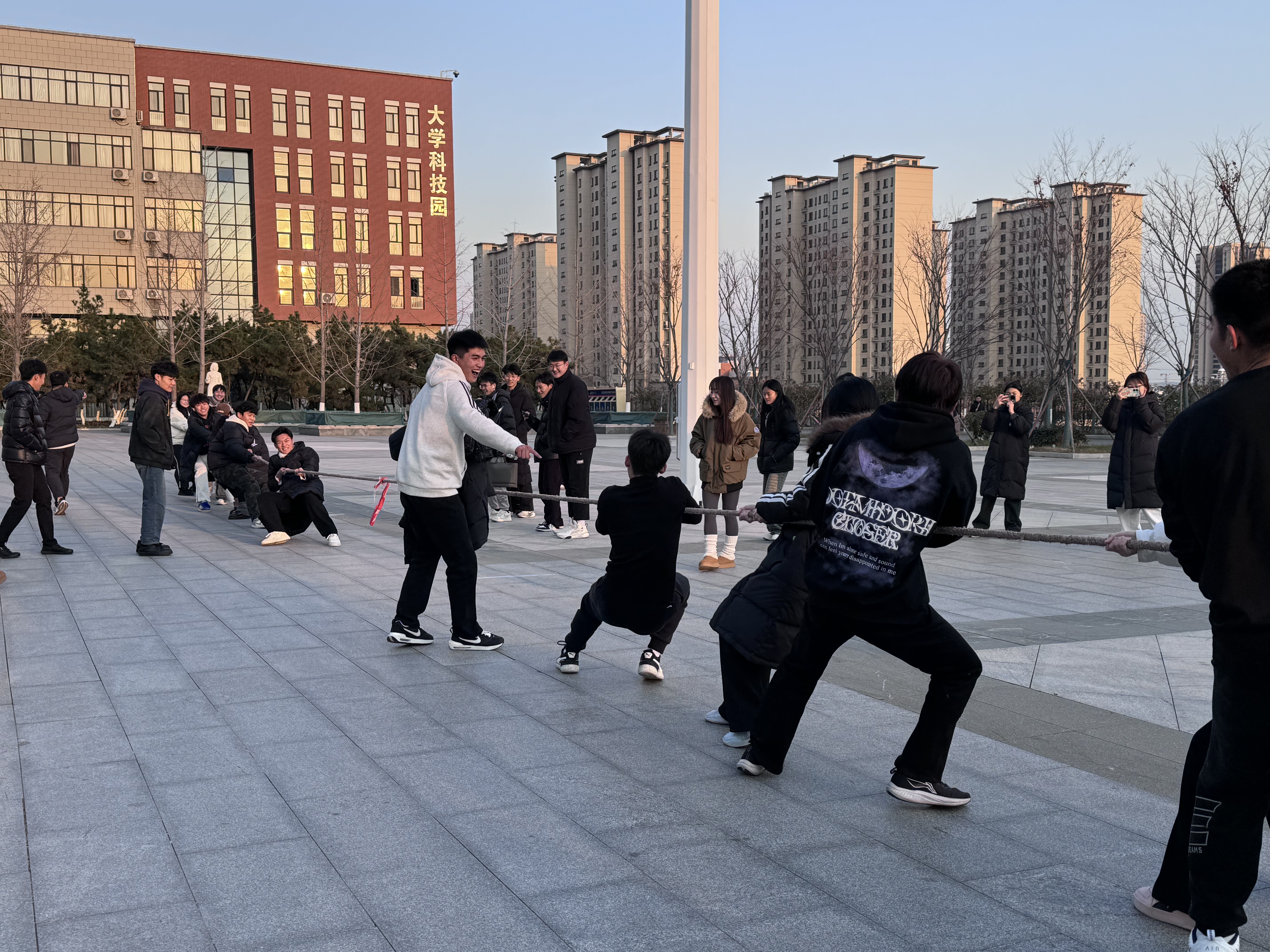 为了增强学生体质,提高身体素质,培养团队合作精神,增进同学之间的友谊,丰富校园文化生活,营造积极向上的氛围,激发学生竞争意识和拼搏精神。经济与管理学院于2024年12月11日,在实验楼楼前举行了一场酣畅淋漓的拔河比赛,参加本次活动有经济与管理学院24级全体学生。