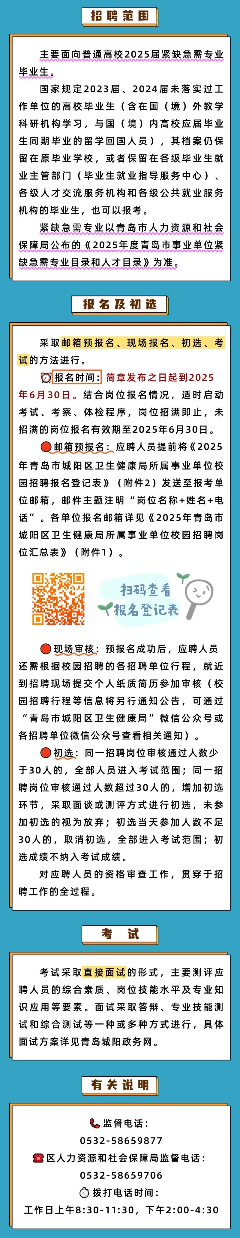 招聘信息丨城阳区卫生健康局所属事业单位校园招聘