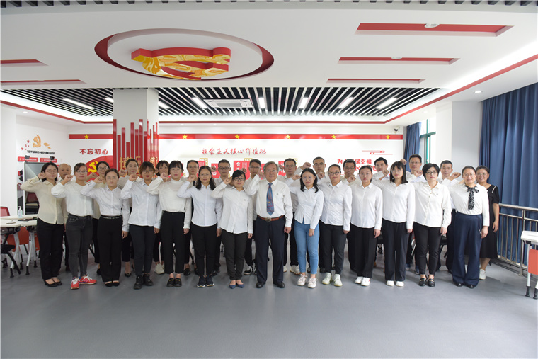 在第37个教师节即将到来之际,9月9日清晨,马克思主义学院教师齐聚思想政治教育VR实践教学中心,举行教师宣誓活动。全体教师齐声宣誓,庄严神圣,充分展现了教师们勇当党的教育事业“生力军”的蓬勃朝气,进一步增强了教师教书育人的责任感、使命感和荣誉感。