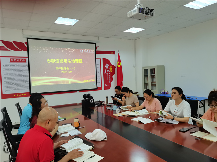 为贯彻落实习近平总书记关于办好思政课的重要论述讲话精神,为迎接即将到来的新学期第一课,9月17日上午,思想道德与法治教研室全体教师在马克思主义学院208会议室举办了集体备课会,备课会由教研室主任薛晓英主持,多位教学经验丰富的老师分享教学经验。