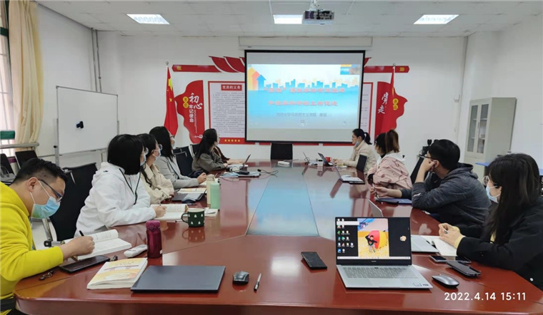 本次会议主要以观看视频课程的方式,学习西南大学唐斌教授关于“原理”课程教学的推进方法以及教学科研相互促进的经验。